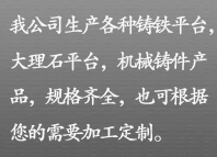 鑄鐵平臺(tái)可以用于檢驗(yàn)機(jī)械零件平面度、平行度、直線度等形位公差的測量基準(zhǔn),也可用于精密零件的劃線和測量、實(shí)驗(yàn)、鉚焊、焊jie、基礎(chǔ)、工作臺(tái)等,鑄鐵平臺(tái)工作...